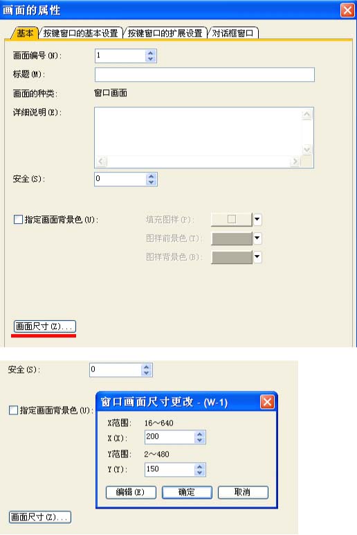 在畫面的屬性對(duì)話框中,標(biāo)題可以不填寫。其它地方不做修改,只需把畫面尺寸改小一點(diǎn)。