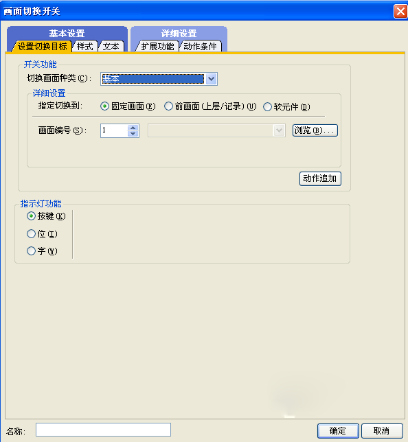 首先我們需要組態(tài)切換畫面的類型,是切換為基本畫面還是切換為窗口畫面,然后在詳細(xì)畫面設(shè)置的時候指定需要切換到的畫面,可以直接切換為固定畫面,在畫面編號里面設(shè)定需要切換到的畫面編號,或者也可以點(diǎn)擊旁邊的瀏覽按鈕選擇里面需要切換到的畫面。